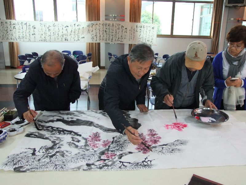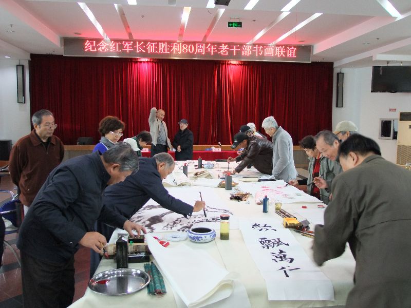 11月8日下午,市老干部活动中心的多功能厅翰墨飘香。为纪念红军长征胜利80周年,姑苏区金阊书画院和市老干部书画协会老同志的书画联谊会正在进行中……