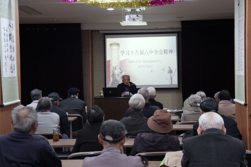 11月9日是老干部组织生活的日子,姑苏区沧浪老干部活动中心举办了一场学习十八届六中全会精神的讲座。近百名老同志参加,其中不乏有九十高龄的离休干部,好学的处级退休干部,还有很多区机关退休干部及附近各个社区的离退休老同志。