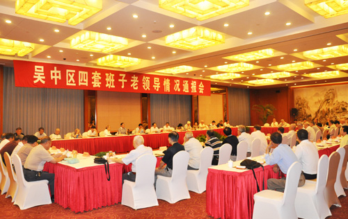 7月13日,吴中区召开区四套班子老领导情况通报会。区委书记俞杏楠,区委副书记、区长金洁等四套班子主要领导出席会议。