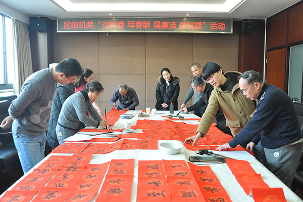 新春将至,1月24日,吴中区委老干部局联合区级机关党工委邀请部分老干部组织开展了一场喜气洋洋、年味十足的“迎新春、写春联、倡廉洁、送祝福”活动,区委老干部局副局长顾向明,区级机关党工委委员、纪工委书记周金明参加活动。