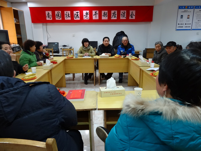 2013年1月22日下午,太仓市南园社区召开了老干部座谈会,倪航、黄贤林、王怀、罗德芳等6位老干部及老干部家属、老干部结对志愿者、社区干部等20人参加会议。