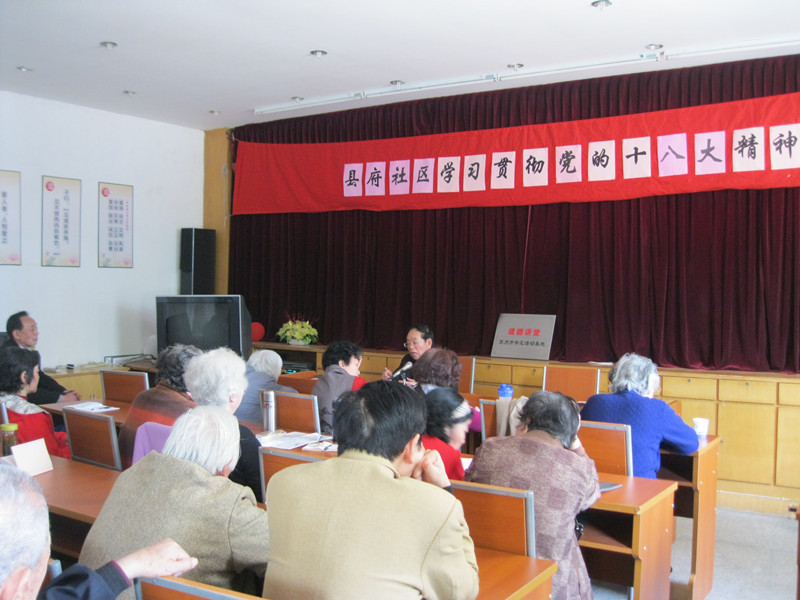 4月15日下午,太仓县府社区邀请太仓市委宣传部原副部长钱承荣为社区党员、楼组长和部分老干部上了一堂党课。
