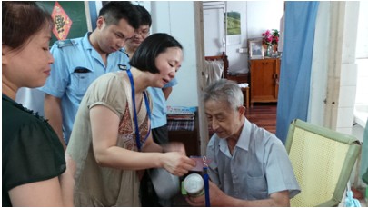 为更好地开展老干部“幸福家园”工程社区“四就近”服务工作,真正做到了在思想上尊重老同志,在感情上贴近老同志,在生活上服务老同志。近日,常熟市绿源社区工作人员和社区城管在社区书记带领下,冒着高温酷暑,对辖区内的七位离休老干部进行了上门看望。走访中,社区书记与老同志亲切交谈,详细询问了老同志的身体、生活和家庭等情况,并为每位老干部送上了社区精心制作了“平安爱心卡”和防暑降温物品风油精和菊花茶,同时叮嘱老同志夏令高温期间多保重,做好防暑降温,祝愿老同志生活顺利、安享晚年。老干部对社区干部冒着高温在百忙中走访慰问,表示由衷的感谢。