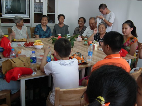 活动当天,40多位参加社区暑期活动的“小雷锋”和托老所里的12位孤寡空巢老人和老干部代表欢聚一堂,同学们为老人送上了自带的水果,给他们读报纸,还特意表演了精心准备的节目。82岁的离休干部夏君朴也开心地唱上了一首《走进新时代》,现场的气氛温馨又甜蜜。接着,小朋友还在托老所老厨师的指导下为老人学拌馅、包馄饨,做汤圆,大家忙得不亦乐乎。老人们看着这些懂事的孩子也凑了上来,大家一起边做边拉起了家常。经过一个多小时,小朋友将一碗碗热乎乎的汤圆和馄饨送到了老人手上,让老人们倍感亲切。张静珠老人激动地说“你们都是我的孙儿啊”!温佳妮小朋友便说:“放假了,我们有时间来陪陪老人,说说话,为老做一些力所能及的事,平时都是大人照顾我们,我们也要懂得回报呀!”