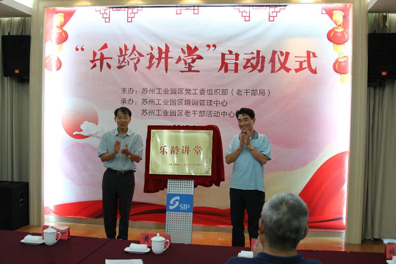 老干部是党和国家的宝贵财富,是推进中国特色社会主义伟大事业的重要力量。活动现场,黄书记发表致辞:近年来,在园区党工委、管委会的关心支持和领导下,园区老干部工作积极适应社会发展新常态及工作形势新变化,牢牢把握为党的事业增添正能量的价值取向,坚持创新导向、规范导向、服务导向,不断在搭建载体、健全制度、提升服务上下功夫、求突破。“乐龄讲堂”的举办即是深入贯彻园区党工委、管委会《关于进一步加强和改进园区离退休干部工作的意见》的要求,实现广大老干部老有所学、老有所乐、老有所为的又一重要举措。在随后举行的揭牌仪式上,园区党工委副书记黄继跃、园区党工委退休老领导王金华共同为“乐龄讲堂”揭牌。
