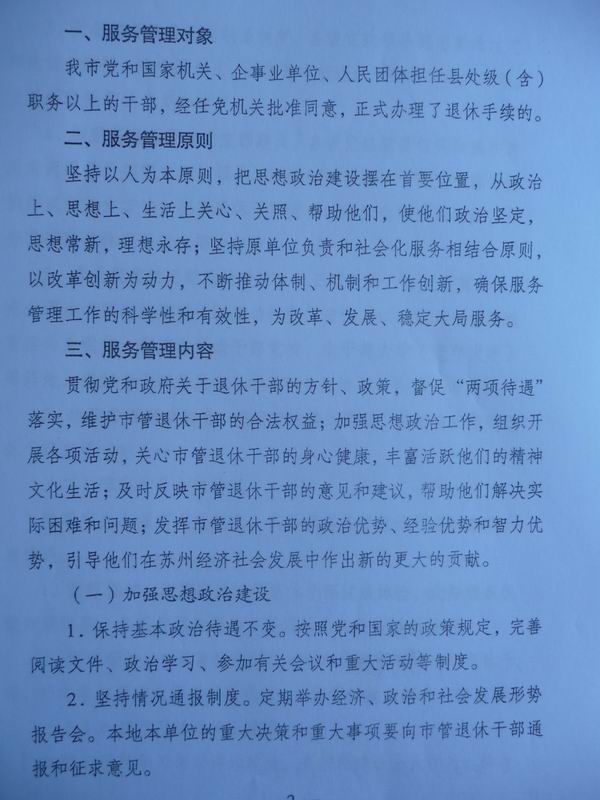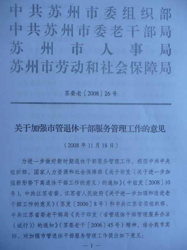 《关于加强市管退休干部服务管理工作的意见》(苏委老〔2008〕26号)