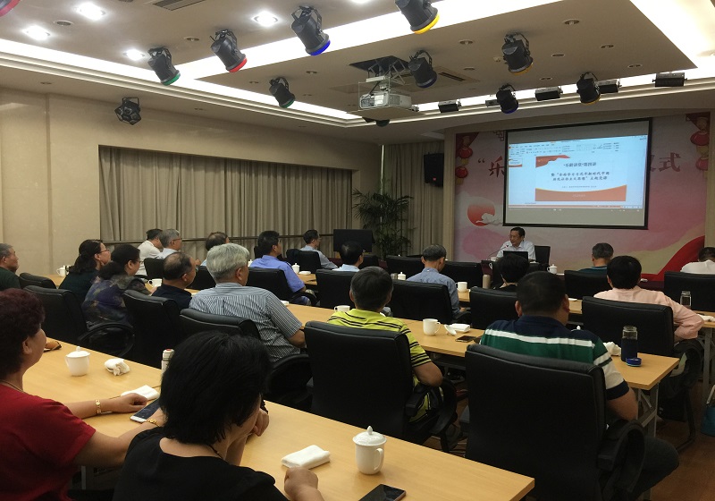 为纪念建党97周年,深入贯彻落实党的十九大精神,6月25日下午,园区老干部局开展“乐龄讲堂”第四讲暨“庆七一”专题党课。活动邀请了原苏州市委宣传部副部长高志罡作“全面学习习近平新时代中国特色社会主义思想”主题讲座,30余名园区管委会退休干部参与活动。