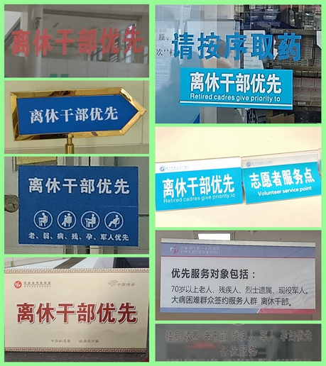 督查调研组深入全市41家离休干部定点医疗机构,发现绝大部分医疗机构已在明显位置设立“离休干部优先”窗口标识,提供专门导医服务,明确专人协调保障,确保离休干部在挂号、就诊、检查、缴费、取药、住院等环节方便快捷,得到优先照顾。