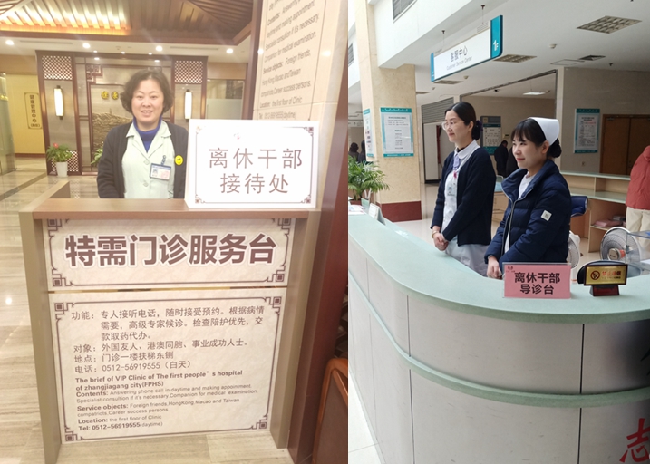 张家港、太仓、昆山、吴江等地医疗机构还设立了离休干部门诊,提供“一站式”服务。常熟市建立离休干部信息化识别优先机制。