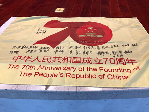 颂祖国,送祝福。经过支委会讨论,老干部支部开展了“颂祖国、送祝福”主题党日活动,定制了一面庆祝新中国成立70周年的旗帜,党员们在旗帜上签名并保存。观看七十周年献礼巨片《70年岁月如歌》,感受新中国70年风雨兼程、走向伟大之路。经过多次排练,老干部支部为祖国送上了一曲《我和我的祖国》,大家都满怀激情,在歌声中表达对祖国的深切情感。