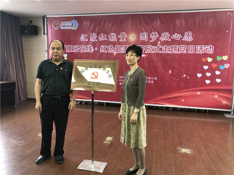 8月29日,“银辉康乐”老干部党支部在太仓市康乐社区“汇聚红能量 圆梦微心愿”开放式主题党日活动中成立。太仓市委老干部局局长、组织部副部长、离退休干部工委书记高洁,城厢镇党委副书记陆明共同为支部成立揭牌。