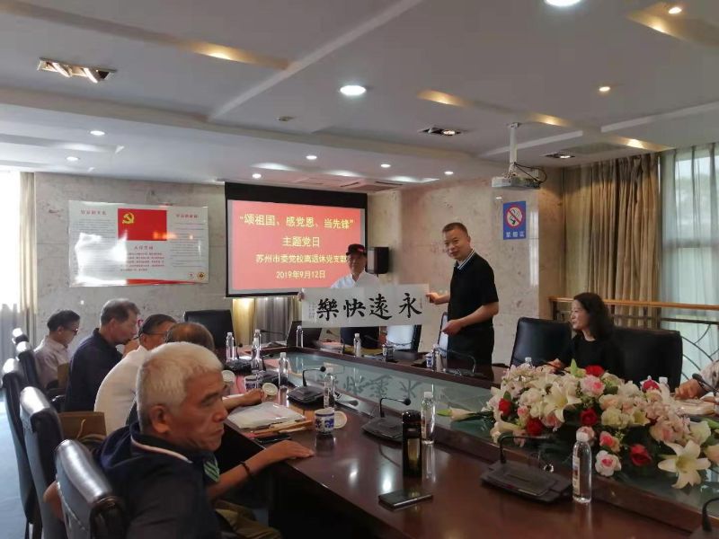 9月12日,市委党校机关党委组织离退休干部党支部开展了“颂祖国、感党恩、当先锋”主题党日活动,19名离退休党员参加。当天下午,部分退休党员代表还参加了苏州市党校系统庆祝新中国成立70周年“红色之恋”文艺汇演彩排活动。