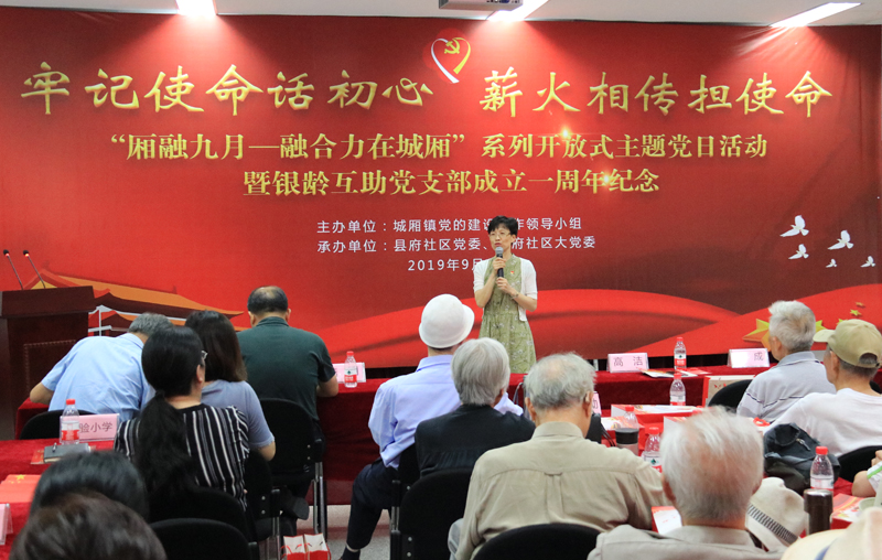 9月16日,太仓市县府社区举办“牢记使命话初心 薪火相传担使命”主题党日活动暨银龄互助党支部成立一周年纪念。市委老干部局局长、组织部副部长、离退休干部工委书记高洁应邀参加活动。