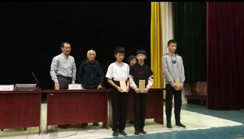 支部生活会结束后,市文广旅局离休党支部和市艺术学校共同举行了“不忘初心,老有所为,助力优秀学生”的捐赠仪式。在艺术学校小剧场,几百名学生济济一堂,邱协耕和金焕两位老党员为刘军伟、刘浩宇、刘国梁三名品学兼优学生发放助学金并作勉励讲话。这是离休党支部第二次的助学捐赠,充分体现了离休干部、共产党员的情操。邱书记语重心长的嘱咐大家要珍惜现在的学习时光,发愤图强,勤学苦练,争当德艺双馨、知行合一的优秀艺术人才。受捐助的学生表示感谢离休党支部的爷爷奶奶们对自己精神和物质上的支持,并表示自己绝不会辜负大家的期望,一定会好好学习,潜心学艺,成长为对社会有用的人。台下学生被邱书记的生活经历和不忘初心、牢记使命的精神风貌深深打动,现场气氛热烈。