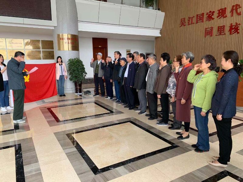 参观结束后,退休干部党支部书记陶仁尚同志带领全体退休干部党员在鲜红的党旗下庄重地举起右手,重温入党誓词,再次向党承诺。