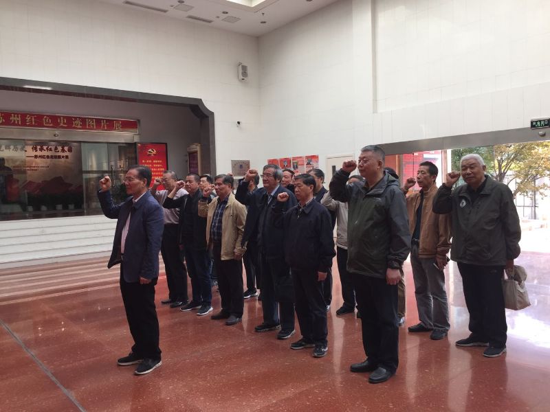 活动首先在苏州市革命博物馆展开。老党员们举行重温入党誓词仪式,牢记新时代共产党员的初心使命,永葆共产党员的政治本色。随后紧跟着讲解员的步伐,参观了苏州红色史迹图片展厅,感受在中国共产党的领导下,苏州人民走过的90多年革命、建设和改革开放的光辉历史。老党员们步入“新民主主义革命时期”展厅,不时停下脚步仔细观看,认真听取工作人员讲解,并详细询问有关情况。