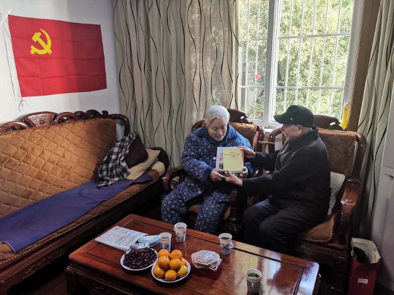 区委组织部副部长、老干部局局长屈大庆,平江活动中心离休支部书记吴琅赞等来到离休干部杨林家中,为他送上《习近平新时代中国特色社会主义思想学习纲要》《习近平关于“不忘初心、牢记使命”论述摘编》等学习材料,吴琅赞书记向他讲述了老干部局对此次主题教育的部署安排以及离休支部开展相关学习活动的情况,也带去了支部其他老同志们的问候。屈大庆局长从7个方面清晰简洁地向杨老传达了十九届四中全会精神。杨老表示,即使在家里,也会认真学习这些材料,做到不掉队。