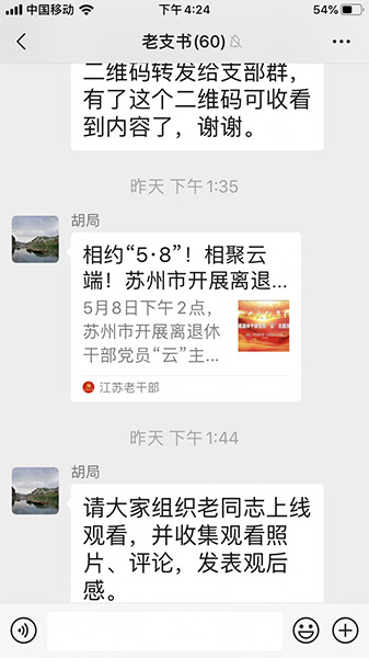深入动员。为让全区老党员都能及时收看活动直播,在疫情期间精神“不断粮”,5月6日来,吴江区委老干部局多方宣传、深入动员,在“老支书”、“银龄工作站”及结对的东门社区党员群等多次投放活动预告,确保大家的知晓率。当时,就得到老党员们的热烈欢迎和支持,并分头转发、传递,大家都对收看活动直播充满期待。