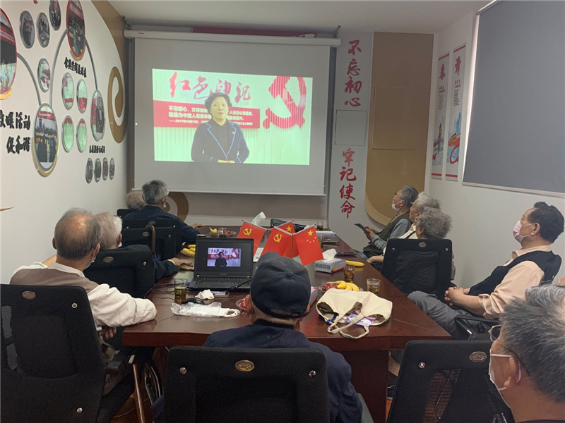 传承红色基因、弘扬时代精神、争当银发先锋三个线上篇章通过离退休干部党员自编自演、自制自拍展现了新时代下广大老干部的精神风貌,也呈现了老干部们助力火红年代,夺取“双胜利”的各类成绩。一支情景舞蹈《长征颂》、一场讲述《抗美援朝的故事》带领大家重温那“甘洒热血写春秋”的激情岁月;“三大法宝”亲历说、老书记、老党员的现场访谈、诗朗诵《老当益壮 初心不移》、微党课《文化自信有信仰》为大家展现了广大老干部老党员在职时不忘初心勇于担当,离岗后发挥余热,继续前行;抖音《公筷公勺》、小品《垃圾分类》通过幽默风趣的形式引领大家积极参与社会新时尚;采访离退休干部先进个人事迹、视频展示示范党支部集锦和情景剧《老沈在线》展现了老干部们志愿服务乐于奉献,“银发生辉”闪闪发光……“云”主题党日活动在男女声二重唱《不忘初心》中落下帷幕。