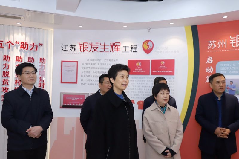 江桦局长一行调研苏州市“银发先锋”新时代文明实践基地,了解了苏州离退休干部发挥作用的特色品牌、特色队伍、特色项目,观看了老干部发挥作用专题片《余晖耀娄东》。江桦局长表示,苏州精准搭建发挥作用平台载体,让老同志参与到脱贫攻坚、对口帮扶贵州铜仁、疫情防控、社区治理等各项工作中,彰显了江苏老干部工作的时代价值。