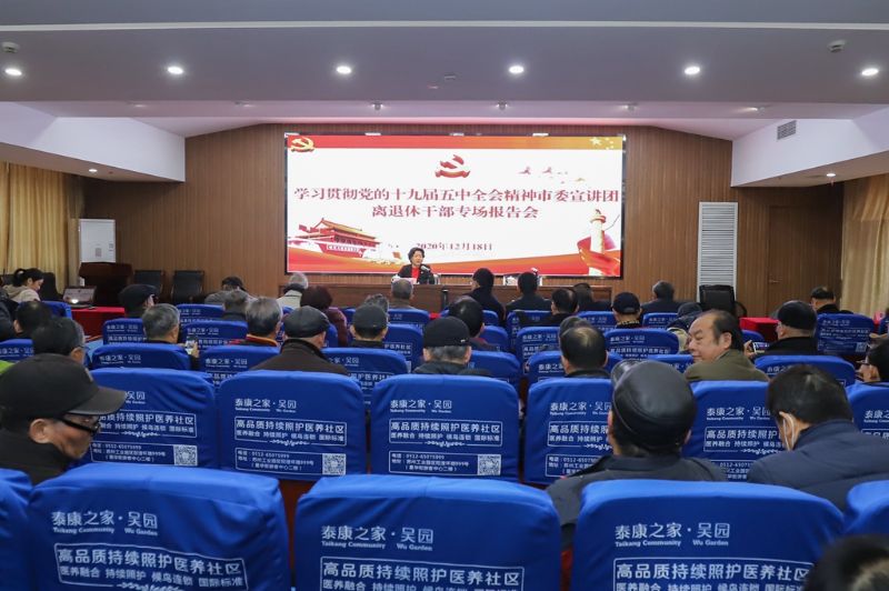 12月18日,学习贯彻党的十九届五中全会精神市委宣讲团离退休干部专场报告会在市老干部党校举行。市委宣讲团成员、市委组织部副部长、市委老干部局局长张娟同志作宣讲报告。市委老干部局副局长、离退休干部工委书记陈燕颜同志主持报告会。