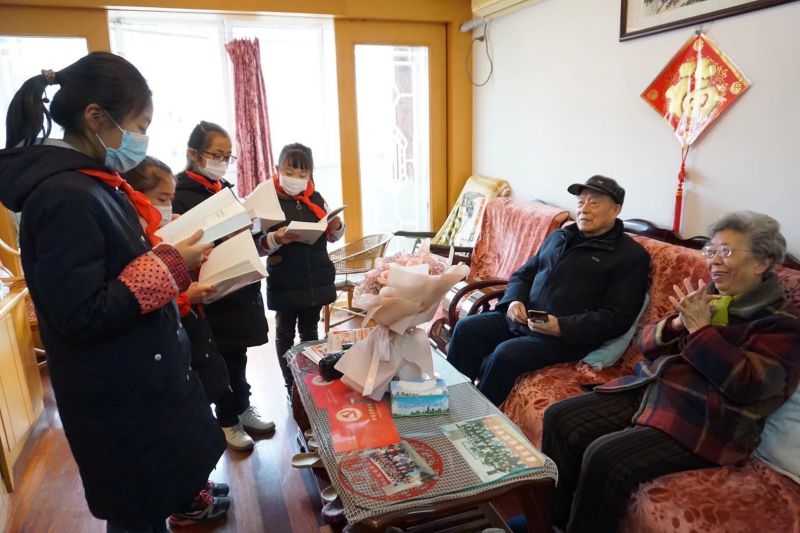 颂扬经典,传承美德,争做新时代好少年,寒假第一天,太仓县府社区举办“红领巾诵经典 迎新春送祝福”慰问老干部活动。