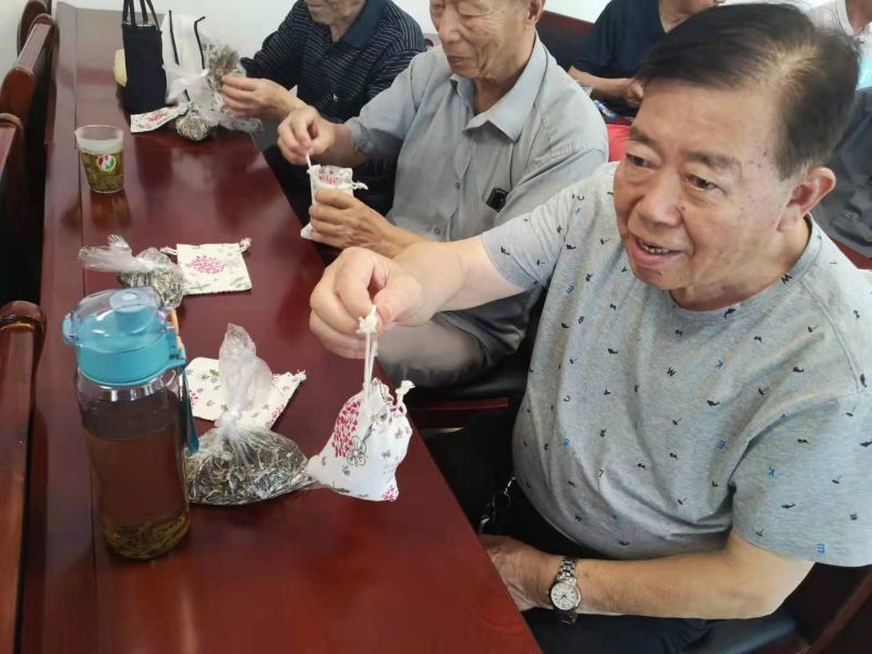 早上9点半,离退休老干部们满怀喜悦地来到活动场地,将事先准备好的一个个香包皮和干艾叶,一盆盆洗净的糯米和粽叶端到桌上。大家分工合作,这边老干部们手把手教团员青年们包粽子,传授他们包粽子的诀窍。那边老干部们做着香囊,唠唠家常唠唠嗑,回忆着过往。活动现场沉浸在一片温馨和谐的融融氛围之中。白白的糯米、青青的粽叶、醇香的艾叶和五彩的香包,在老干部们手中上下翻飞,不一会儿就成了一个个三角形的粽子和漂亮的香囊。小小的粽子和香囊,体现了我们农业人“孝老敬老”的传统美德,承载满足了老干部“老有所乐”和对美好生活向往的祈望。