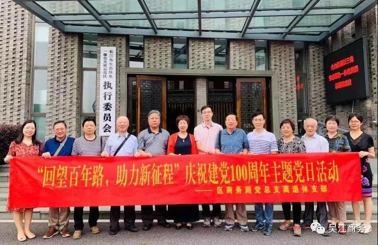 为进一步推进退休党员同志的党史学习教育与长三角一体化发展大局相结合,6月15日,区商务局党总支离退休支部前往上海市青浦区、汾湖高新区开展了“回望百年路助力新征程”庆祝建党100周年主题党日活动。