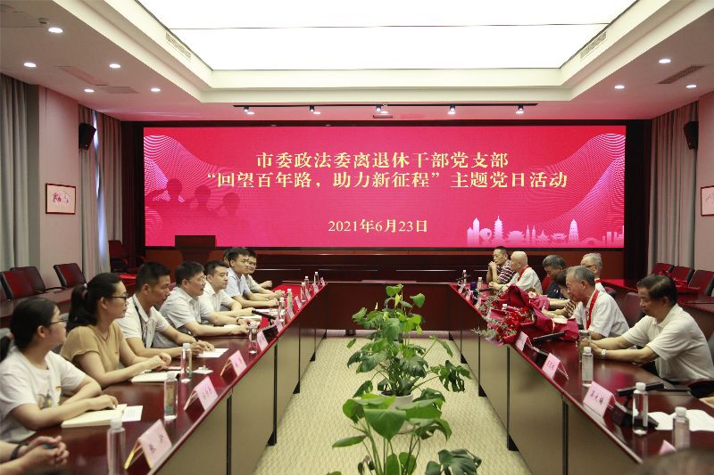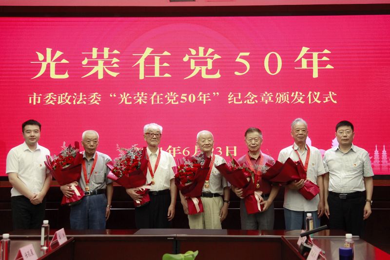 6月23日上午,市委政法委离退休干部党支部开展“回望百年路,助力新征程”主题党日暨“光荣在党50年”纪念章颁发仪式,为机关党龄满50年、一贯表现良好的老党员办法纪念章,激励引导广大党员干部向老党员学习、向老同志致敬。受市委常委、政法委书记徐美健委托,市委政法委副书记朱耀明出席活动并讲话。市委政法委离退休干部支部老同志、机关年轻党员干部代表参加活动。