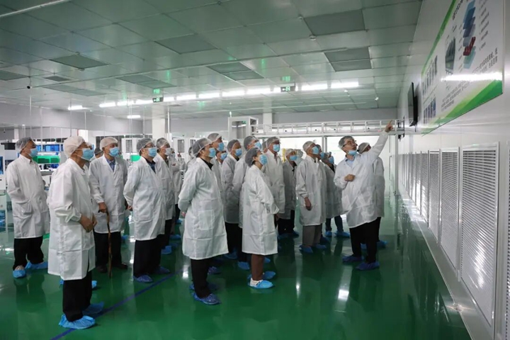 在大族激光华东区域总部基地,老领导们走进生产车间,实地察看光伏电池片生产线,认真听取企业在技术研发、产品应用和市场拓展方面的介绍。作为全球领先的工业激光设备制造商,大族激光在航空航天、新能源等关键领域持续突破,展现了中国智造的硬核实力。老领导们对其坚持自主创新、攻坚核心技术表示高度赞赏。