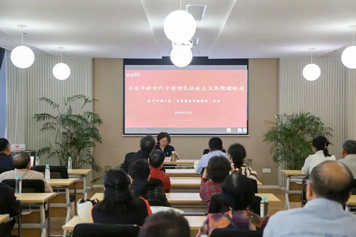 10月20日,苏州市“百名局长百场宣讲”走进姑苏区吴门桥街道悦龄健康综合服务中心。市委老干部局副局长黄蕾蕾作《牢记嘱托践初心 守护桑榆暖夕阳 汇聚银发力量助力中国式现代化苏州新实践》专题宣讲。吴门桥街道相关领导、老干部条线工作人员、“银龄”志愿者代表及老党员工作室负责人参加活动。