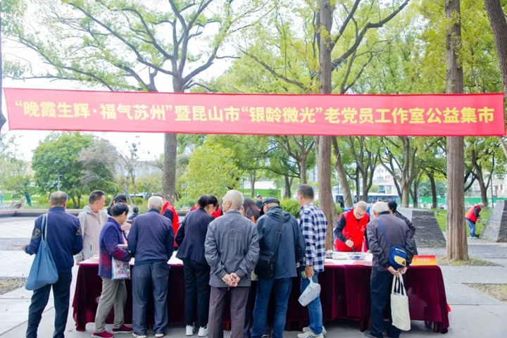 10月22日,“晚霞生辉·福气苏州”暨昆山市“银龄微光”老党员工作室公益集市在玉山广场举行。来自苏州市直机关和昆山市的十家老党员工作室齐聚一堂,各展所长。