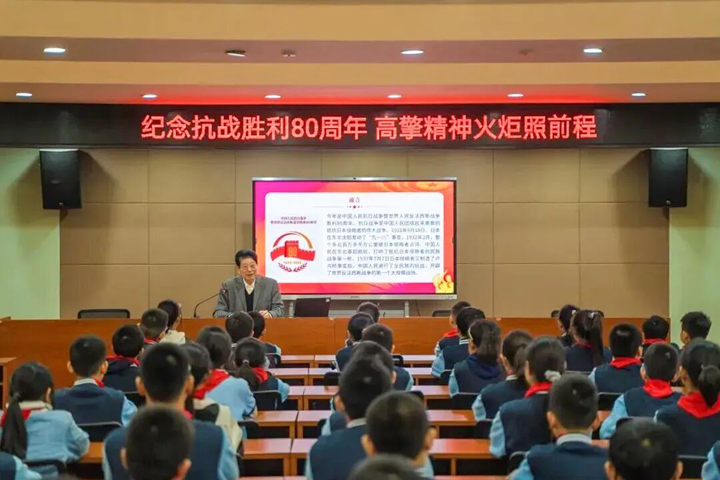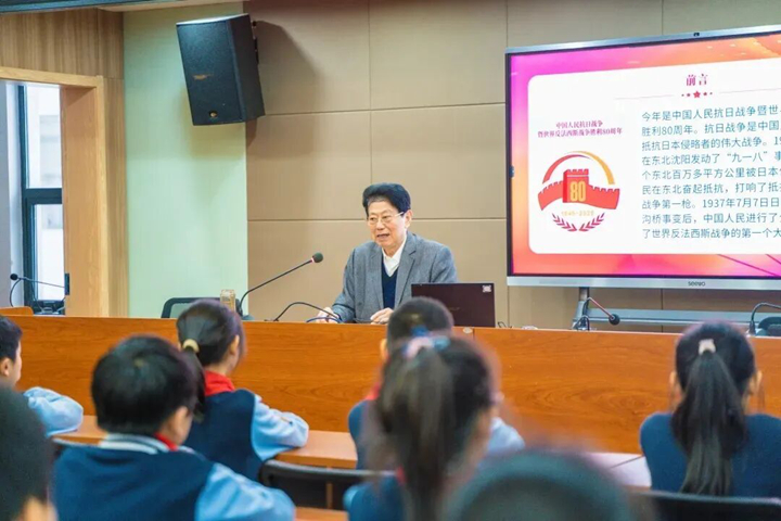 近日,吴中区委老干部局联合区关工委、吴中实验小学开展“五老”进校园活动。吴中区晚晴讲师团成员薛金根为少先队员们带来“纪念抗战胜利80周年,高擎精神火炬照前程”主题讲座。