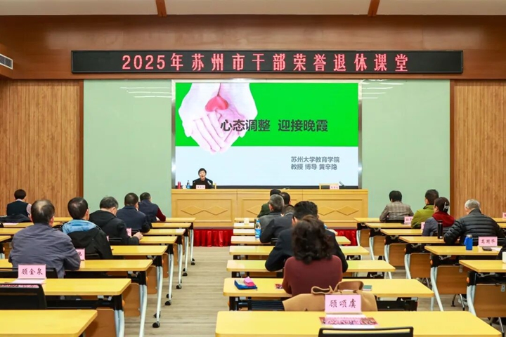12月23日—24日,苏州市举办2025年干部荣誉退休课堂,40余名新退休干部参加。荣退课堂从丰富干部荣退工作内涵切入,设置党性锤炼、廉政纪律、乐龄生活、银发聚力四门课程,邀请退休老领导、老专家、相关领域负责同志作主题分享,激励老同志永葆初心使命、及时调整心态,继续为党和人民的事业发光发热。