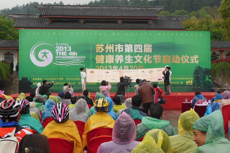 4月20日上午,苏州市委老干部局、市文明办、市广播电视台等联合举办苏州市第四届健康养生文化节启动仪式,该活动将覆盖春夏秋三季,含盖养生之道、穹窿美食节、健身操大赛、环山自行车赛等内容。来自市卫生局、市体育局、市民政局老龄办等单位的100多人参加了活动启动仪式。