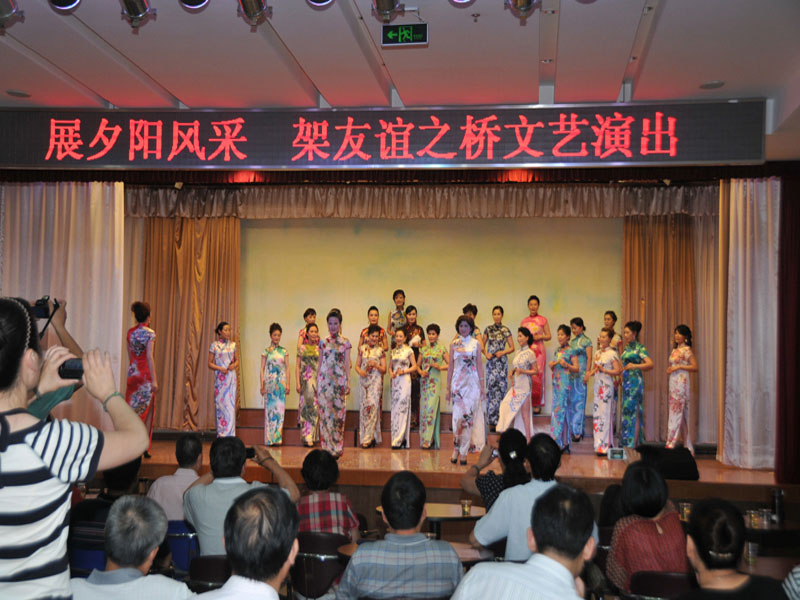 老干部时装队自2002年成立以来成绩卓著,先后参加各种规模的演出300多场,曾获得全国中老年艺术节——服饰大赛的金奖,也登上央视舞台,得到过国家领导人的首肯和褒扬。整台文艺表演既有倡导低碳生活现代的“绿色环保秀”,也有表现晚清水乡女子淡雅优美的“穿越服饰秀”,既有时尚的“新潮时装秀”,又有古典高雅的“旗袍秀”。时装队多才多艺,不仅能走,还能唱。“金丝鸟在哪里”、“红楼二尤”、“咏梅”……黄莺出谷的歌声绕梁三日不绝。时装队美不胜收的表演彻底征服了场下观众,大家纷纷拿出照相机留下美好一刻。