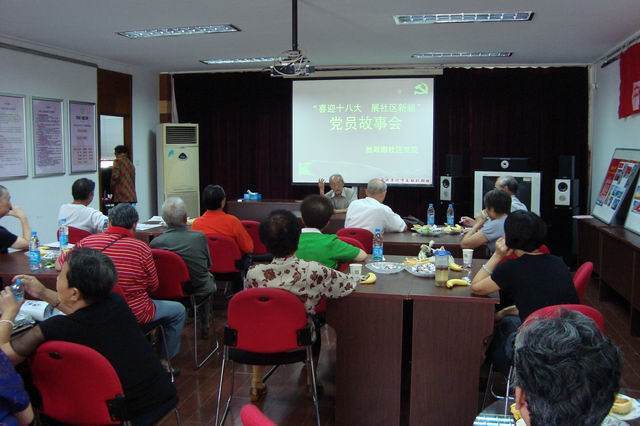 近日,平江区拙政园社区邀请辖区老干部和老党员举召开了喜迎十八大党员故事会。故事会以“忆往昔峥嵘岁月,说身边好人好事”为主题,老干部、老党员代表讲述的方式,请老干部、老党员讲述亲身经历的革命故事,为党的十八大的胜利营造良好的氛围。