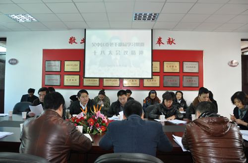 11月29日上午,吴中区委老干部局组织召开全局干部职工对十八大精神进行再学习再讨论活动,区委老干部局薛国强副局长主持。