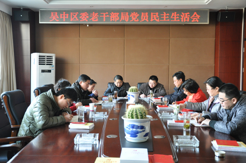 12月25日上午,吴中区委老干部局组织召开党员民主生活会。局党支部书记、副局长薛国强主持会议。会上,认真学习了十八大文件精神,学习了新的《中国共产党党章》以及有关文件汇编材料。全体干部党员对照省委十二届三次全会指出的“三宽四有”要求,对一年来的工作进行了回顾,对存在的问题进行了认真地剖析,开展了批评和自我批评,提出了整改措施,并诚恳地交换了意见。薛国强书记要求全体党员要加强学习,提升素质,提高为老干部服务的意识,努力做一名合格党员。