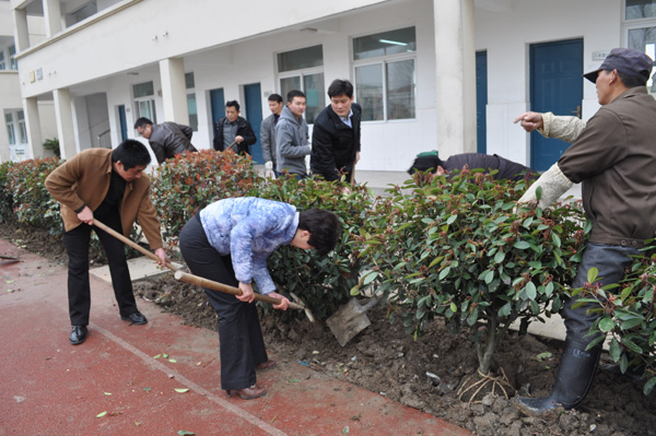 区委老干部局局长胡洪明表示,建设美丽中国要靠我们每个人的努力,我们结合“党员干部进万家”活动,根据结对村的需要,从建设美丽乡村、美丽校园做起,为村里的小学植树添绿。也希望这一份新绿,能够为学校的老师和学生创造较为优美的环境,让老师们更好地发挥人类灵魂工程师的作用,辛勤浇灌祖国的花朵,让学生们从美丽心灵开始,健康茁壮成长。