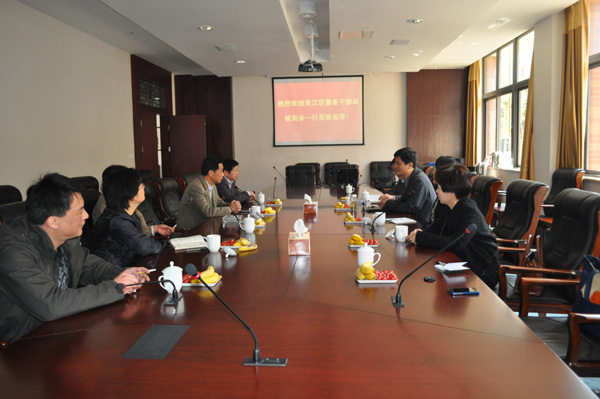 吴江区委老干部局局长胡洪明一行在张家港市委老干部局局长庞赞平等领导的陪同下参观了张家港市老干部活动中心,对活动中心建设和内部设施情况进行了实地调研。随后,胡局长一行听取了张家港市局对活动中心工作人员、物业、门卫、绿化和医务室、理发室等五个方面的情况介绍,并就两地老干部日常活动情况进行了交流。