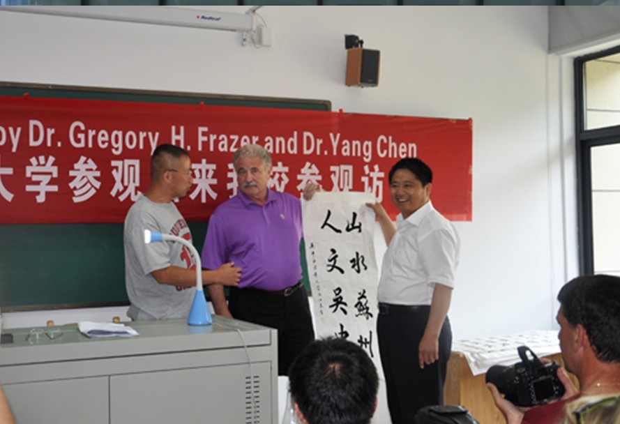 6月18日上午,美国匹斯堡杜肯大学健康科学院院长弗瑞泽教授率领的参观团走进吴中区老年大学《孙子兵法》课堂,领悟《孙子兵法》博大精髓,区委老干部局副局长、区老年大学校长薛国强等陪同参观。 弗瑞泽院长一行饶有兴致地参观了区老年大学的舞蹈班、电子琴班、电脑班、声乐班、烹饪班等教室和老干部活动中心,对老年大学丰富的专业设置、精良的教学设备、多彩的活动内容、浓厚的文化氛围赞叹不已。每到一处,都详细了解课程设置、师资配备、服务保障、管理模式等情况,并与正在学习的学员进行了亲切的交流。 弗瑞泽院长带领他的学生们认真听取了中国苏州孙子兵法国际研究中心主任、中国孙子兵法研究会理事、原吴县县委书记管正介绍有关《孙子兵法》的历史。管书记为国际友人详细讲解了《孙子兵法》中的“计篇”,并用生动的实例,从古到今,从国际到国内,不仅从军事上,而且从社会保障、义务教育、公共卫生、文化和外交等领域加以解析,诠释了《孙子兵法》的思想精髓,参观团一行对管书记引人入胜的解说产生了浓厚的兴趣,并对《孙子兵法》这部代表中华名族传统文化瑰宝的著作赞叹不已。弗瑞泽院长在讲话中对吴中区老年大学的现代化教学和管理模式给予了高度评价,表示不虚此行。 随后,薛国强副局长代表吴中区老年大学向弗瑞泽教授赠送了老同志的书画作品。 下午,参观团一行又兴致勃勃地参观了国家级5A级景区和国家级科普教育基地——穹窿山,当年孙武隐居的茅蓬坞孙武苑、《孙子兵法》全文碑苑、兵圣堂等纪念性建筑,优美的自然景观加上浓厚的文化底蕴让贵宾们流连忘返,纷纷拿出相机留念。 此次国际学术交流活动,搭建了吴中区老年大学与美国院校沟通的平台,向国际友人展示了中华民族传统文化的典范——吴文化,推动了相互间的交流、学习和借鉴,增进了友谊。在传播弘扬吴文化的同时,也学习国外的优秀文化,推动文化的大繁荣、大发展,为吴中明天更美丽、更美好发挥作用。