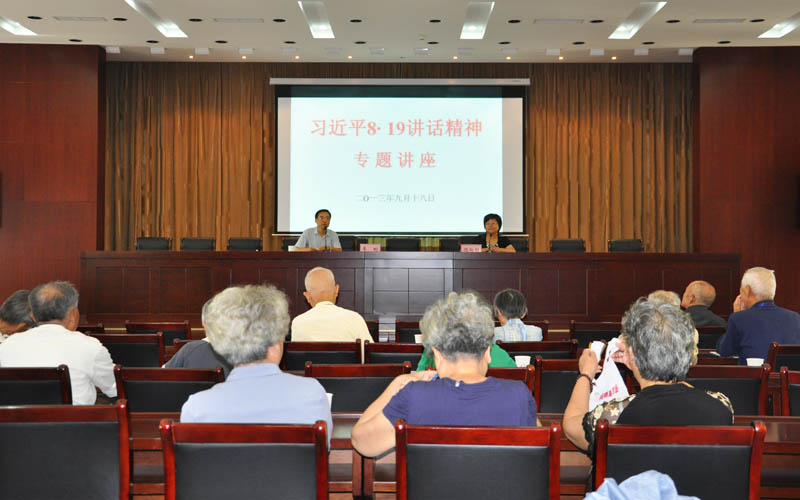 8.19全国宣传思想工作会议是在全党全国各族人民全面深化改革、奋力推进中国特色社会主义事业的关键时刻召开的一次全局性重要会议。此次会议对于做好新形势下宣传思想工作、弘扬中国精神,凝聚中国力量,提升宣传工作正能量具有重大的理论和实践意义。韦教授以扎实的理论基础、独特的政治视角、生动形象的语言对习总书记的讲话精神进行了深入的分析与讲解,为老领导、老同志们更好地理解8.19讲话精神的深刻内涵提供了很好的引领和帮助。