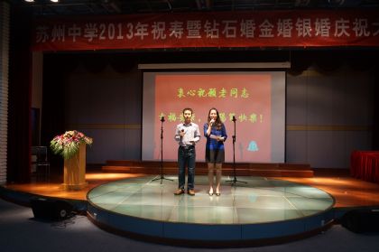 2013年10月12日,一个暖洋洋、金灿灿的日子,苏州中学在科技信息楼五楼演播厅隆重召开2013年重阳节祝寿暨钻石婚金婚银婚庆祝大会,离退休老同志们欢聚一堂,笑语不断。
