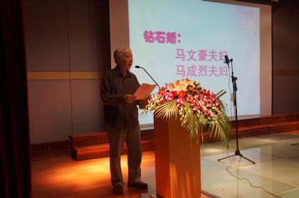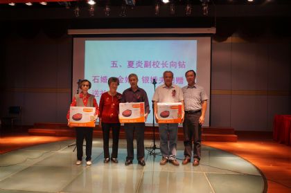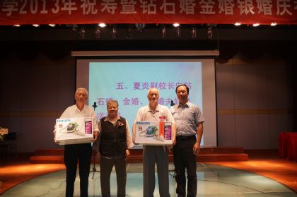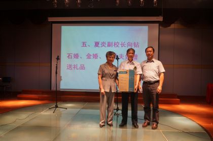 夏炎副校长代表学校向钻石婚、金婚、银婚老同志赠送礼品