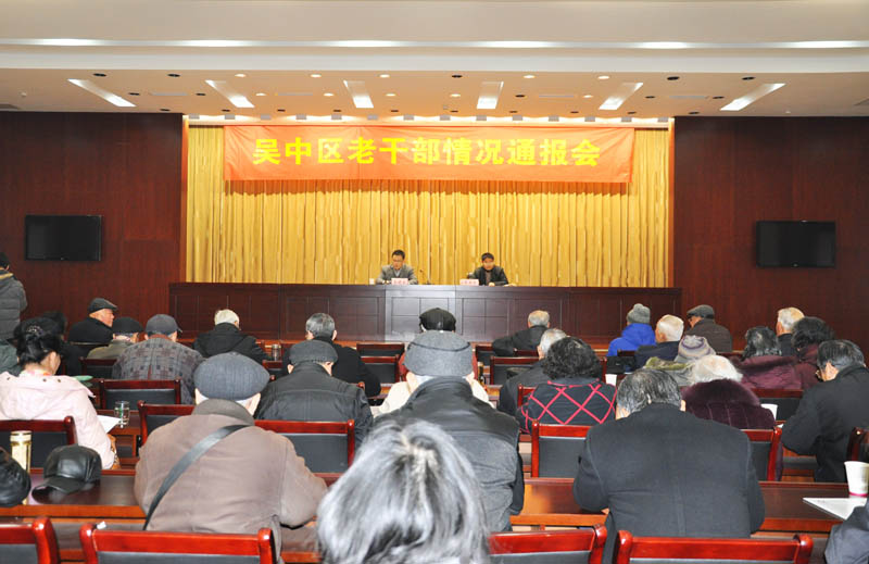 1月20日上午,吴中区召开全区老干部情况通报会。区委组织部副部长、老干部局局长秦晓良向老领导、老干部通报了全国组织工作会议和吴中区委三届六次全体(扩大)会议精神。区委老干部局副局长薛国强主持会议。 会上,秦晓良局长向老干部们传达了全国组织工作会议精神和区委三届六次全体(扩大)会议精神,回顾总结了2013年度全区经济社会事业发展情况,并对2014年区委、区政府工作目标、任务作了分析和介绍。 他说,要实现区委三届六次全体(扩大)会议提出的要求和2014年工作目标任务,需要全区上下团结一心、共同努力,更离不开全区离退休老领导、老同志的关心和支持。希望各位老领导、老同志在保重身体的前提下,继续发挥好余热、再立新功。 最后,秦晓良局长向全区离退休干部对全区经济社会发展和老干部工作的关心支持表示衷心感谢,并恭祝各位老领导、老同志新年快乐、健康长寿、阖家幸福、万事如意。