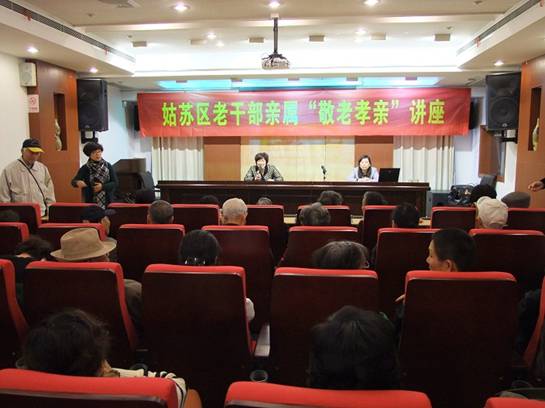 本次讲座是姑苏区委老干部局开展“老爸老妈我来了”“四个一”系列活动(一封倡议书、一次户外活动,一堂孝老讲座,一场交流表彰会)的一项专题内容,旨在培育老干部干部亲属,尤其是子女们既要树立敬老孝老的风气,又能提高服侍老人,照顾老人的本领。